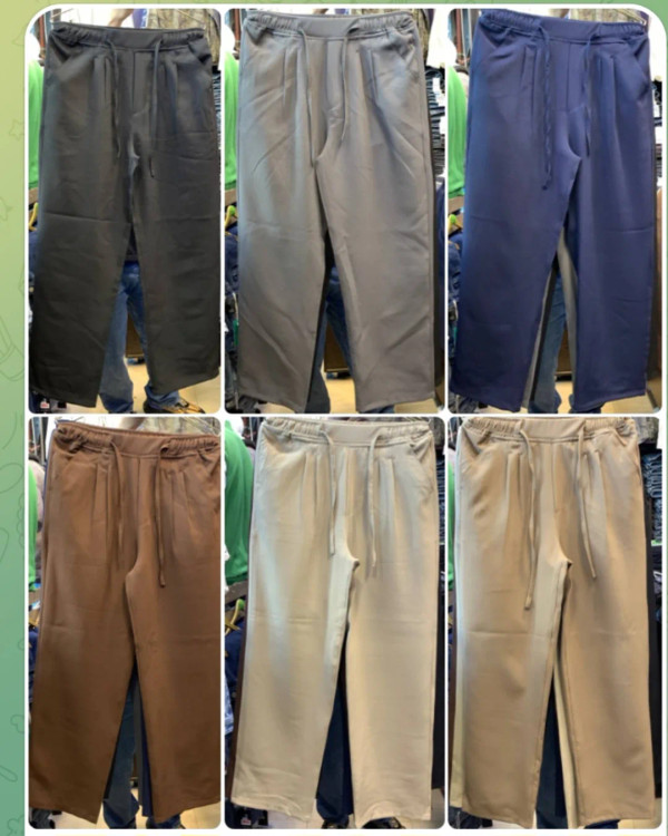 شلوار مازراتی پارچه خارجی با مدل بگ تن خور شیک و کمر کش بندخور. مناسب برای اندازههای L، XL و 2XL با قد 108 سانتیمتر.